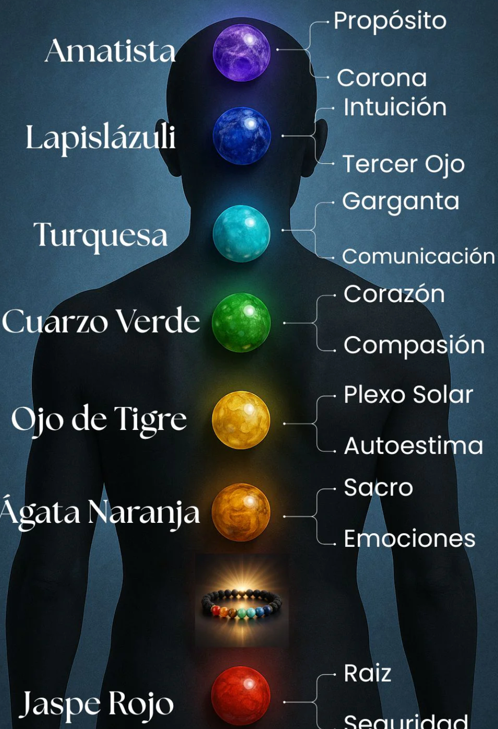 PULSERA 7 CHAKRAS® equilibra tu energía interior y armoniza cuerpo, mente y espíritu. Su poderosa combinación de piedras naturales ayuda a liberar bloqueos, atraer buenas vibras y restaurar tu bienestar desde adentro.
